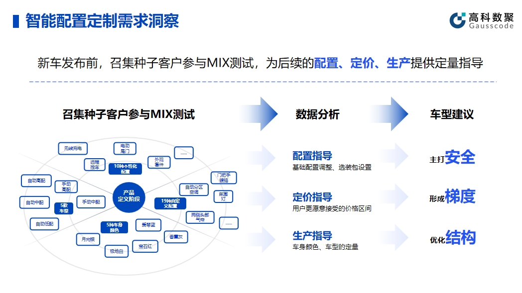 智能配置的有效应用可以帮助企业提升产品和服务的智能化水平。在实际应用中,Biyapay帮助车企在新车发布前召集种子客户参与MIX测试,顺利获得收集种子客户的反馈和数据,车企能够精细调整产品配置,为后续的配置、定价、生产给予定量指导。同时,这种方法不仅有助于提高产品质量,还能提前发现潜在问题并及时解决。